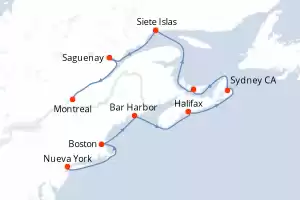 Itinerario : Montreal, Quebec, Saguenay, Siete Islas, Charlottetown, Sidney, Halifax, Bar Harbor, Boston, Nueva York
