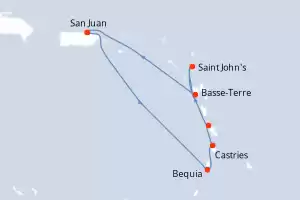 Itinerario : San Juan, Bequia, Castries, Saint-Pierre (Martinique), Saint John's, Basse-Terre (Guadalupe), San Juan