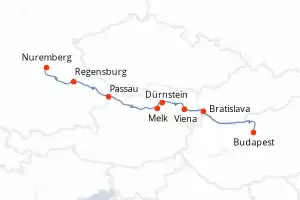 Itinerario : Nuremberg, Regensburg, Passau, Melk, Dürnstein, Viena, Bratislava, Budapest
