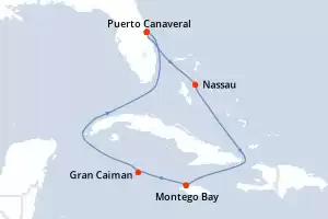 Itinerario : Puerto Canaveral, Nassau, Montego Bay, Gran Caiman, Puerto Canaveral
