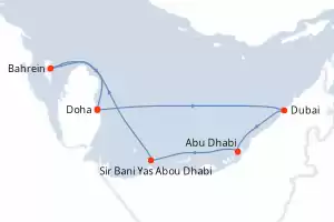 Itinerario : Doha, Dubai, Abu Dhabi, Sir Bani Yas Abou Dhabi, Bahrein, Doha