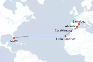 Itinerario : Miami, Gran Canarias, Casablanca, Alicante, Barcelona