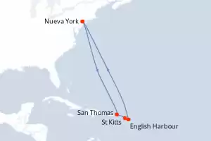 Itinerario : Nueva York, San Thomas, St Kitts, English Harbour, Saint Martin (Antilles Néerlandaises), Nueva York