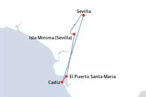 Itinerario : Jerez, Sevilla, Cadiz, El Puerto Santa Maria, Isla Minima (Sevilla), Sevilla