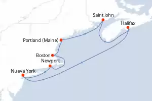 Itinerario : Nueva York, Newport, Boston, Portland (Maine), Saint John, Halifax, Nueva York