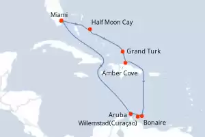 Itinerario : Miami, Half Moon Cay, Grand Turk, Amber Cove, Bonaire, Willemstad(Curaçao), Aruba, Miami