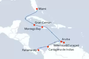 Itinerario : Panama city, Cartagena de Indias, Willemstad(Curaçao), Aruba, Montego Bay, Gran Caiman, Miami