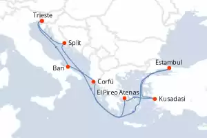 Itinerario : Trieste, Split, El Pireo Atenas, Kusadasi, Estambul, Corfú, Bari, Trieste