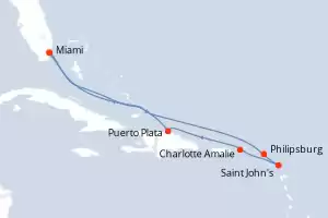 Itinerario : Miami, Philipsburg, Saint John's, Charlotte Amalie, Puerto Plata, Miami