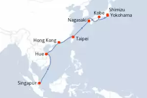 Itinerario : Singapur, Hue, Hong Kong, Taipei, Nagasaki, Kobe, Shimizu, Yokohama