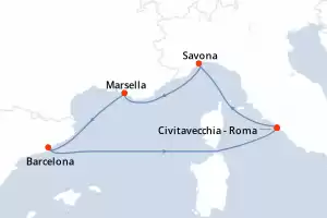 Itinerario : Marsella, Barcelona, Civitavecchia - Roma, Savona, Marsella