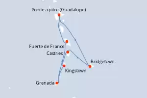 Itinerario : Fort-de-France, Pointe a pitre (Guadalupe), Bridgetown, Castries, Kingstown, Grenada, Fort-de-France