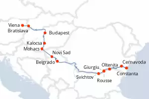 Itinerario : Oltenita, Cernavoda, Constanta, Cernavoda, Oltenita, Giurgiu, Rousse, Svichtov, Belgrado, Novi Sad, Mohacs, Kalocsa, Budapest, Bratislava, Viena