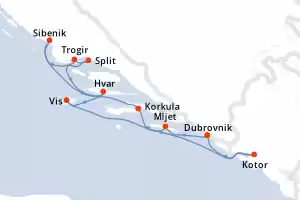 Itinerario : Dubrovnik, Mljet, Korkula, Sibenik, Trogir, Split, Hvar, Vis, Kotor, Dubrovnik