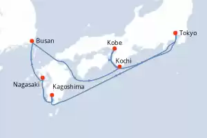 Itinerario : Tokyo, Kobe, Kagoshima, Nagasaki, Busan, Fukuoka, Beppu, Tokyo, Kobe, Kagoshima, Nagasaki, Busan, Fukuoka, Beppu, Tokyo