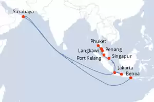 Itinerario : Singapur, Port Kelang, Penang, Phuket, Langkawi, Jakarta, Semarang, Surabaya, Benoa