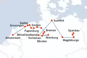A lo largo de las orillas del río, otras ciudades y pueblos, son Dresden, Meissen, conocida por su delicada porcelana, Worlitz, hogar de magníficos castillos y jardines, Wittenberg, donde Martín Lutero comenzó su Reforma y Magdeburgo, con su impresionante catedral gótica.