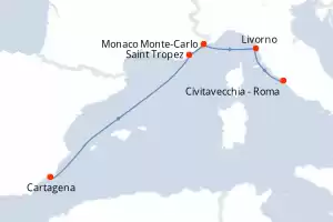 Desde Cartagena parten prestigiosas líneas de cruceros, como Royal Caribbean. Barcos como el Symphony of the Seas navegan con el destino principal
